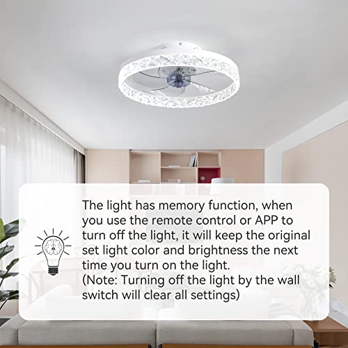 50 cm Lampadario con Ventilatore da Soffitto con Telecomando, Moderno K9 Crystal Plafoniera con Ventilatore Integrato, Reversibile 6 Velocità Funzione Estate/Inverno Dimmerabile Cameretta, Bianco