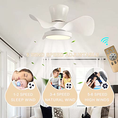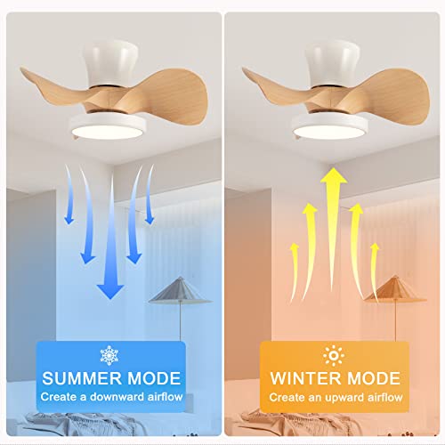 Lampadario Con Ventilatore Da Soffitto E Telecomando, Plafoniera Con Ventilatore LED Dimmerabile Silenzioso, Mini Ventola Lampadario DC Reversibile 6 Velocità Per Camera Da Letto-White Wood Grain