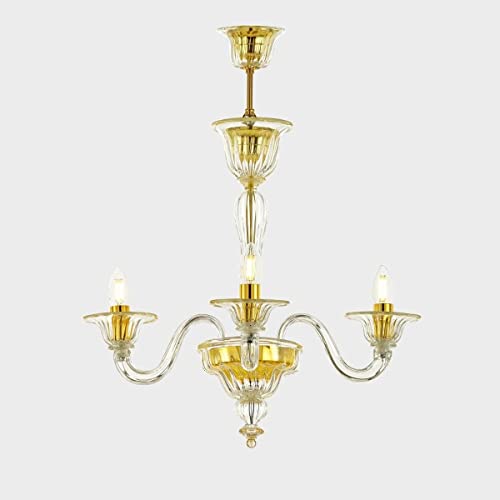 Lampadario Vetro Soffiato Veneziano Proteo Oro, 3 Luci, Montatura Oro
