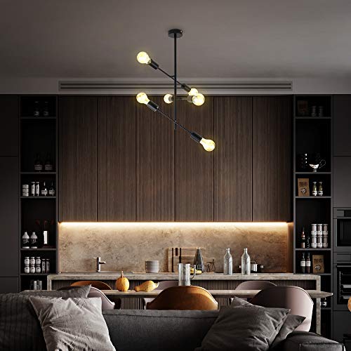 Lampadario vintage, plafoniera con bracci inclinabili, attacco per 6 lampadine E27 non incluse da max 60W, lampada a sospensione moderna per salotto o cucina, metallo nero, 230V, IP20