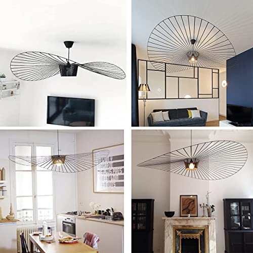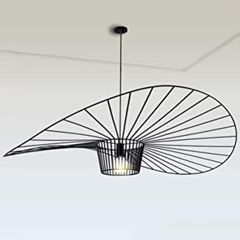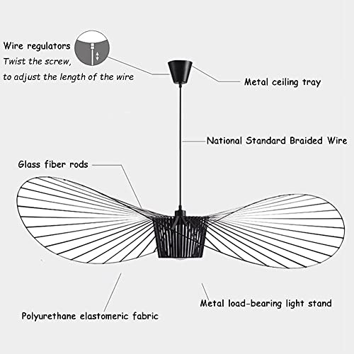 Lampadario Vintage Lampada A Sospensione Soggiorno Lampada A Sospensione Semplice Creativo (luce Regolabile In Altezza), Design Cappello In Fibra Di Vetro + Tessuto In Fibra E27 Max 40W Black 170CM