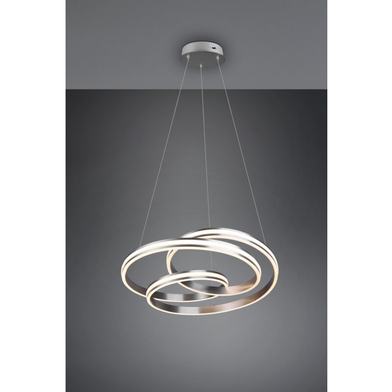 YARA é una lampada a sospensione del marchio Trio Lighting composta da una struttura in metallo di colore nichel opaco con diffusore a vortice. Cavetti regolabili in lunghezza che permettono di variare l'altezza della lampada in base i propri gusti ed esigenze. Ispirata agli anelli planetari che ruotano attorno a Saturno, YARA è un costante rincorrersi di linee sinuose, curve precise e regolari che creano forme perfette. La particolare luce led continua, interna ed esterna al profilo della struttura, amplifica la resa luminosa evidenziando il design futuristico di questo intrigante prodotto. Dotata di modulo Led dimmerabile da 60 watt, resa luminosa 7200 lumen, disponibile con temperatura colore che può andare dai 2300k ai 4000k (luce caldissima, calda e naturale). Un lampadario dal design autentico con delle linee eleganti e avvolgenti, perfetto per arredare e illuminare con stile e ottima luminosità ambienti moderni, dalla sala da pranzo alla zona living. Disponibili anche nei
