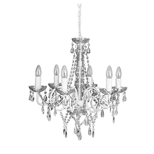 Lampadario White Chalet, Bianco Lucido, a 6 bracci, in metallo, con cristalli