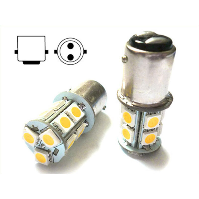 2 Lampade Led Barca Nautica BA15D B15D Bianco Caldo 12V 24V 3W No Polarita Piedi Dritti 13 Smd 5050 Baionetta G18 "1 COPPIA" 2 Lampade led con 13 LED SMD 5050 -attacco BA15D B15D G18- - Baionetta Piedi Dritti - -Funziona sia 12V e 24V- - 10V-32V Senza Polarità- -Bianco Caldo 3000K- -Lampada Led Per Barca- INFORMAZIONI UTILI: - Voltaggio: DC 10V-32V - Angolo Illuminazione:360° - Valore CRI: Ra>80 - Grado IP: IP20 - Potenza di consumo:Circa 3 W Ogni Lampada equale ai 30W di lampada incandescenza - Colore luce LED: Bianco Caldo 3000K - Luminosità: Circa 280 Lumen Ogni Lampada - Numero di LED SMD per lampadina:13 SMD 5050 - Misura: Diametro Massimo 18mm, Lunghezza totale 41mm, Lunghezza Bulbo 20mm. - Tipo Attacco: BA15D G18 Piedi Diritti(contatti elettrici si trovano nei due punti sotto attacco) - Durata: > 25000 Ore - Confezione da 2 lampadine Nota Bene: - Due Poli si trovano sotto attacco con doppio contatti senza polarità. - Lampada Led Per Barca a 12V e 24V - Queste Lampade non vanno