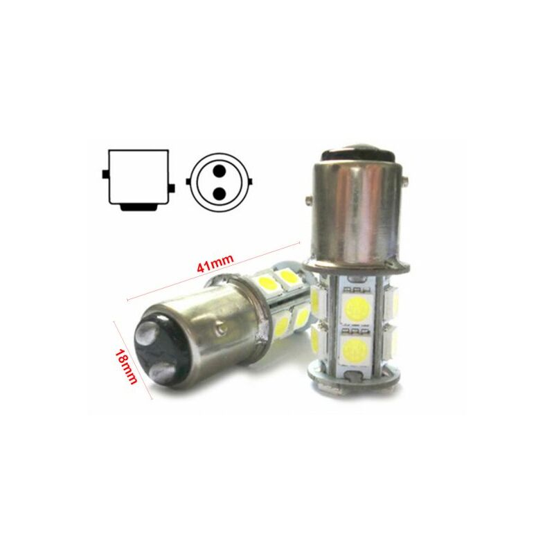 2 Lampade Led Barca Nautica BAY15D Bianco Freddo 12V 24V 3W No Polarita Piedi Sfalfati 13 Smd 5050 Baionetta G18,5 "1 COPPIA" 2 Lampade led con 13 LED SMD 5050 -attacco BAY15D- - Baionetta G18,5 Piedi Storti- -10V-32V Senza Polarità- -Bianco Freddo 6000K- -Lampada Led Per Barca- INFORMAZIONI UTILI: - Voltaggio: DC 10V-32V - Angolo Illuminazione:360° - Valore CRI: Ra>80 - Grado IP: IP20 - Potenza di consumo:Circa 3 W Ogni Lampada equale ai 30W di lampada incandescenza - Colore luce LED: Bianco Freddo 6000K - Luminosità: Circa 280 Lumen Ogni Lampada - Numero di LED SMD per lampadina:13 SMD 5050 - Misura: Diametro Massimo 18mm, Lunghezza totale 41mm, Lunghezza Bulbo 20mm. - Tipo Attacco: BAY15D G18,5 Piedi Storti(contatti elettrici si trovano nei due punti sotto attacco) - Durata: > 25000 Ore - Confezione da 2 lampadine Nota Bene: - Due Poli si trovano sotto attacco con doppio contatti senza polarità. - Lampada Led Per Barca a 12V e 24V - Queste Lampade non vanno per luci di stop