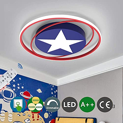 Lampade LED Per Camera Da Letto Per Bambini Plafoniera Captain America Dimmerabile Con Telecomando Paralume Moderno in Metallo Acrilico Illuminazione Della Stanza Dei Ragazzi E Delle Ragazze 51WØ50CM