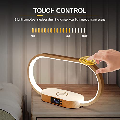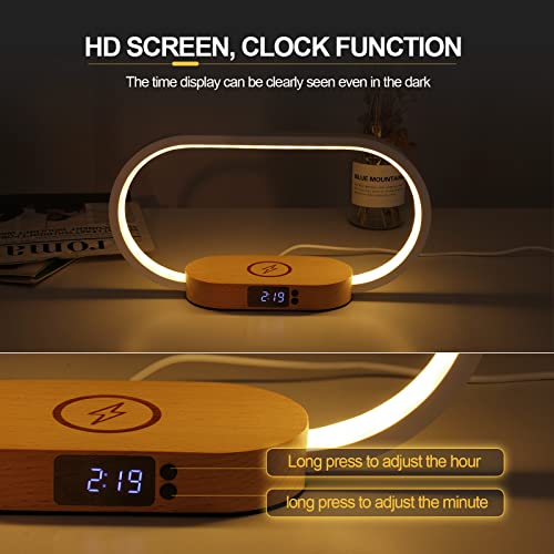 Lampade da Comodino con Ricarica Wireless, 10W 9V/2A Lampada da Tavolo con Ricarica Wireless e Porta USB, Lampada da Scrivania con 3 Modalità di Colore Dimmerabile per Camera da Letto, Studio