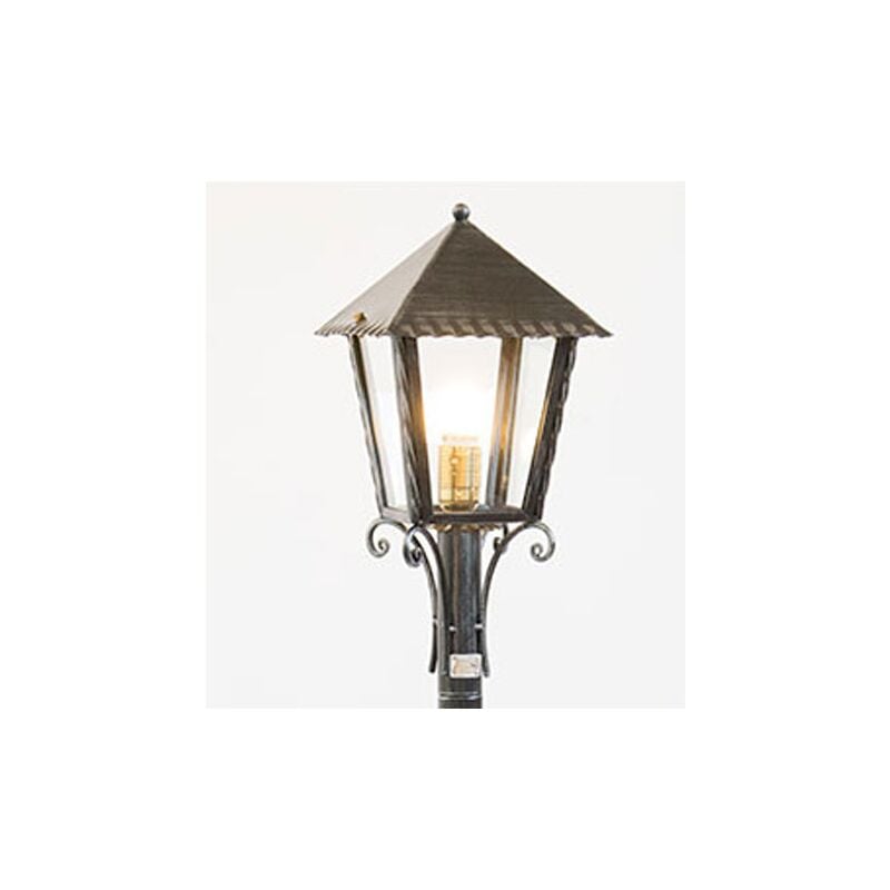 LANTERNA SU PALO HEIDI IN FERRO BATTUTO LAMPADE LAMPIONE APPLIQUE LANTERNE LANTERNA HEIDI da applicare su palo Cruccolini Il fascino e il calore che solo uno chalet di montagna sa trasmettere, entrano a far parte delle nostre giornate con la linea di lampade Heidi. L'illuminazione esterna è indispensabile per poter godere del proprio giardino anche dopo il tramonto. Nella lanterna Heidi Il ferro viene plasmato in spirali abilmente forgiate che delimitano gli angoli dei paralumi in vetro trasparente, che diffondono la luce in modo ottimale. cm. 20x20xh40 - E27 - 1x100 watt