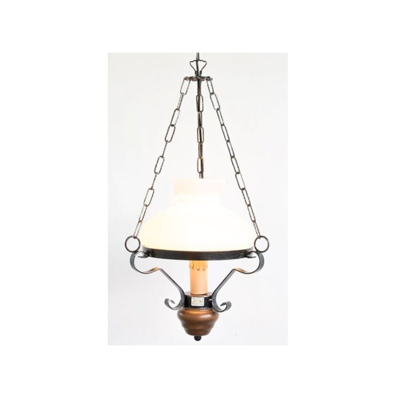 LAMPADE LINEA VECCHIA AMERICA LAMPADA A SOSPENSIONE Ø CM 24 Ispirato ai primi nostalgici lampadari a petrolio, Vecchia America è il lato romantico delle lampade in stile rustico. Il paralume in vetro con apertura superiore ricorda i vecchi lumi, e la luce soffusa riempie di calore l'ambiente, uno sfondo ideale per le attività quotidiane. La fragilità del vetro, la forza del ferro ed il calore del legno si uniscono in questa lampada, dando vita ad un pezzo dal design unico e nostalgico. Da abbinare agli altri complementi della collezione. Dimensioni: Ø 35 x 60 ↑ cm Massima estensione: 110 ↑ cm Lunghezza catena: 50 ↑ cm Consiglio d'uso: L'applique Vecchia America si intona con ambienti rustici, ideale per cucine dotate di isola o penisola e per saloni. 1 lampada E27 max 60 W - IP40 - Uso interno - 220-240 V / 50 Hz - Lampadine escluse - Garanzia 5 anni
