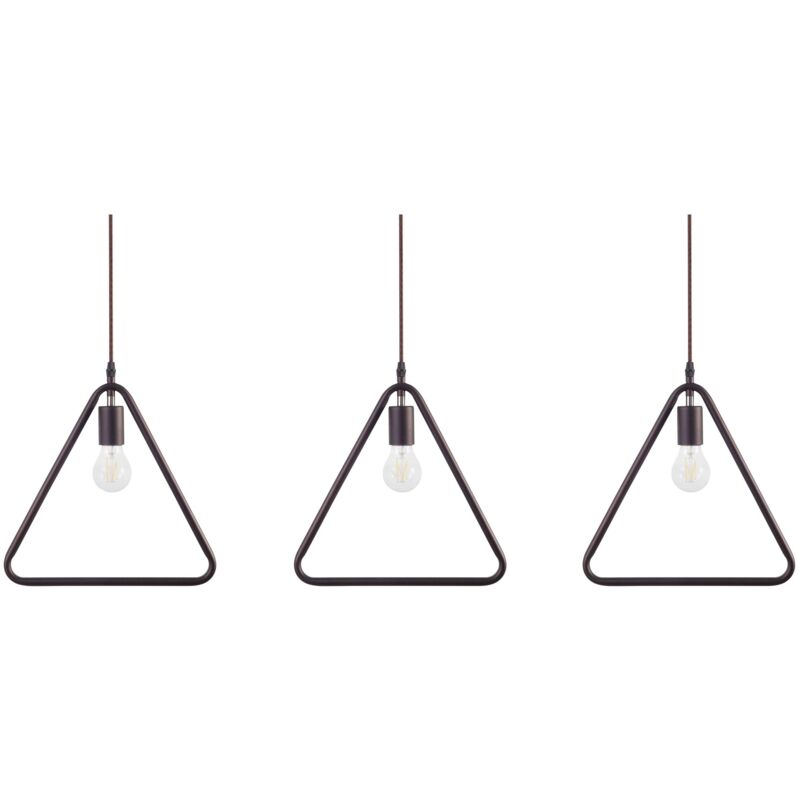 Set di 3 lampade a sospensione geometriche. Rinnova ogni stanza con gusto, con questo splendido set di 3 lampadari. Realizzato in solido e durevole metallo di altissima qualità, presenta originali paralumi cilindrici trasparenti che diffondono una luce calda. Dettagli: Tipo di prodotto: Lampadario Stile: Moderno Colore principale: Marrone Tonalità: Marrone scuro Tipo di materiale: Metallo Materiale principale: Metallo Materiale secondario: Materiale sintetico Materiale del paralume: Metallo Potenza elettrica: Max. 60W Finitura: Opaca Codice IP di protezione: IP 20 Lampadine richieste: 3 Voltaggio: 220-240 V (50 Hz) Dimensioni: Lunghezza del cavo: 145 cm Profondità: 35 cm Larghezza: 35 cm Altezza: 183 cm Peso: 1 kg L'offerta include: Non include: Lampadine, 3 x Lampadario Caratteristiche chiave: Ideale anche come illuminazione da lettura, Ideale per interni in stile industriale, Design moderno, Materiali di alta qualità, Risparmio energetico ottimizzato, Lavorazione eccellente Guida al