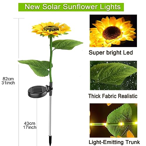 XRR Lampade solari per esterni da giardino, 2 pezzi, girasoli, decorazione da giardino con steli luminosi, IP65, impermeabili, per prati, terrazze, cortili, marciapiedi