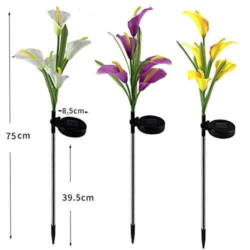Colorato e bello: 3 luci LED RGB Calla Lily Flowers, ognuna ha diversi colori che cambiano per illuminare il tuo giardino. Perfetto per il tuo giardino, aiuole, alberi, recinzioni, marciapiedi.