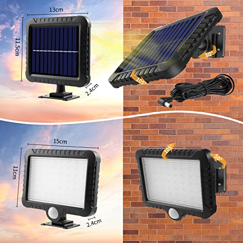 Lampade solari per esterni con sensore di movimento, IP65 impermeabile super luminose lampada da parete solare, angolo di illuminazione di 120°, lampada solare da giardino con cavo da 5 m