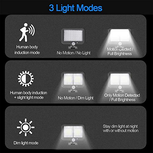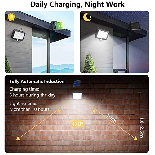 Luce solare ultra luminosa con sensore di movimento: il nostro faretto a energia solare dispone di 56 perline LED ultra luminose ed è più luminoso rispetto ad altri. L'area di illuminazione di 120° è molto più luminosa rispetto ad altre lampade solari a LED simili. Incredibile efficienza delle fotocellule che funziona perfettamente anche in inverno. Nel frattempo, il pannello LED può essere ruotato orizzontalmente per soddisfare le vostre esigenze di illuminazione da diverse angolazioni.