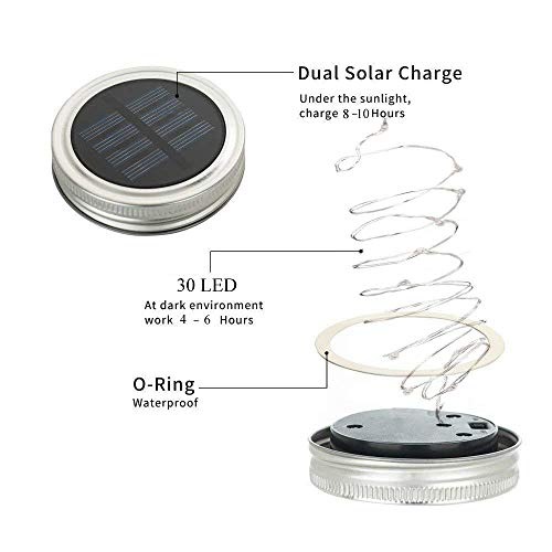 Set di 4 lampade solari per esterni, 30 LED, in vetro di conserva, luce bianca calda, lanterna Mason Jar Lampions per balcone, lampada da tavolo, decorazione esterna, impermeabile, feste, matrimoni