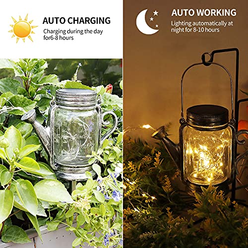 【SENSORE DI LUCE INTELLIGENTE】 Poiché il barattolo di vetro è dotato di un sensore di luce, la luce solare raccoglie l'energia solare durante il giorno e la immagazzina nella batteria integrata, luce automatica di notte.