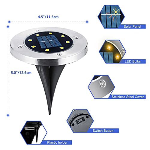 Lampade Solari da Giardino, 8 Luci a Disco Solare a LED Integrate, Luci Interrate Resistenti Alle Intemperie per Percorsi e Cortili e Passerelle e Patio e Prato (8pcs)