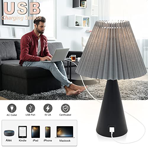 Set di 2 Lampade da Tavolo, Abat Jour da Comodino Touch Controllo Tattile Dimmerabile Porta USB, Lampade da Comodino Moderne Paralume in Tessuto per Camera da Letto Salotto 2 Lampadine a LED Inclusa
