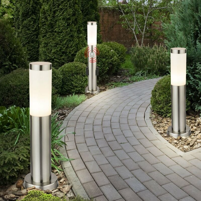 Descrizione Lampade da terra di design in acciaio inossidabile per il tuo esterno . Con queste luci, ad esempio, il percorso attraverso il giardino può essere perfettamente messo in scena o determinati oggetti nell'area esterna della tua casa possono essere magnificamente accentuati. Una delle tre luci ha 2 prese, ideali per collegare tosaerba o altri attrezzi elettrici da giardino. Inoltre, questa lampada è dotata anche di un rilevatore di movimento, che è un vantaggio in termini di sicurezza per la tua casa. Grazie alla classe di protezione IP44, le luci sono protette dagli spruzzi d'acqua ed è quindi predestinato per l'uso esterno. Le sorgenti luminose non sono incluse nella fornitura. La fornitura include una lampada da terra con rilevatore di movimento e prese, nonché due lampade da terra con un'altezza di 45 cm! Dettagli lampada da terra con rilevatore di movimento e attacchi • tipo di lampada: lampada da terra • materiale: acciaio inossidabile • colore: argento • paralume
