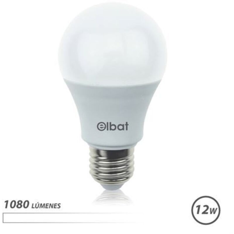 Elbat A60 Lampadina LED - 12W - 1080lm - E27 - Luce bianca. -Potenza: 12W -Lumen: 1080 -Tipo di luce: Luce bianca 4000K -Attacco: E27 -Angolo: 220°. -Dimensioni: 60x120 mm -30.000 ore di vita. -15.000 accensioni.