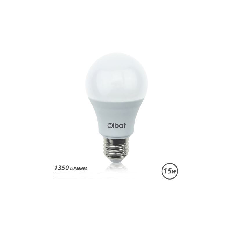 Elbat Lampadina LED A60 15W E27 1350lm - Luce bianca 4000K Specifiche: -Potenza: 15W -Lumen: 1350 -Tipo di luce: luce bianca 4000K -Attacco: E27 -Angolo: 270° -Dimensioni: 60x118 mm -30.000 ore di vita. -15.000 accensioni.