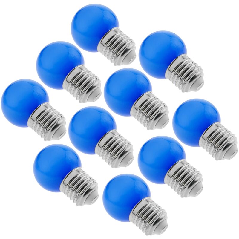 Lampadina LED dal design sferico per creare atmosfera all'interno e all'esterno. La sua tecnologia LED consente di risparmiare energia elettrica senza perdere la qualità della luce. Ideale per uso decorativo alle feste e per ghirlande all'aperto. Caratteristiche del prodotto: CARATTERISTICHE: la lampadina a LED fornisce una luce brillante e di lunga durata risparmiando energia. Dimensioni ridotte di facile installazione grazie alla filettatura E27. Il suo design è ideale per decorazioni in ristoranti, bar, caffè, giardini, ecc. Include 10 unità. SPECIFICHE: Lampadina LED piccola a basso consumo. Ha una forma sferica G45, blu. Efficiente adattamento al connettore grazie alla spessa coppa della filettatura E27. Ha una tensione massima di 230 VAC. La sua classe energetica è A+. La potenza massima è di 1,5 W generando 200 lumen. Elevata durata con una vita utile di 25.000 ore. INSTALLAZIONE: Grazie alla filettatura E27, la più comune sul mercato, l'installazione della lampadina è semplice