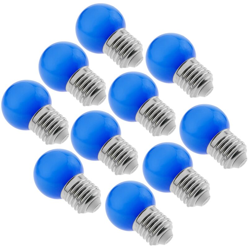 Lampadina LED dal design sferico per creare atmosfera all'interno e all'esterno. La sua tecnologia LED consente di risparmiare energia elettrica senza perdere la qualità della luce. Ideale per uso decorativo alle feste e per ghirlande all'aperto. Caratteristiche del prodotto: CARATTERISTICHE: la lampadina a LED fornisce una luce brillante e di lunga durata risparmiando energia. Dimensioni ridotte di facile installazione grazie alla filettatura E27. Il suo design è ideale per decorazioni in ristoranti, bar, caffè, giardini, ecc. Include 10 unità. SPECIFICHE: Lampadina LED piccola a basso consumo. Ha una forma sferica G45, blu. Efficiente adattamento al connettore grazie alla spessa coppa della filettatura E27. Ha una tensione massima di 230 VAC. La sua classe energetica è A+. La potenza massima è di 0,5 W generando 75 lumen. Elevata durata con una vita utile di 20.000 ore. INSTALLAZIONE: Grazie alla filettatura E27, la più comune sul mercato, l'installazione della lampadina è semplice