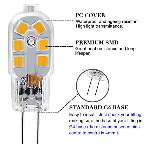 TINS Lampadina LED G4,Lampadina LED 2W G4,AC/DC 12V,300LM,3000K Bianco Caldo,Lampada a Risparmio Energetico Senza Sfarfallio, Può Sostituire Lampadina Alogena 20W,10 Pezzi (Bianco Caldo)