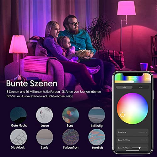 Le lampade Smart Home WiFi sono compatibili con Alexa, Google Assistant. Con il controllo vocale K è possibile accendere o spegnere qualsiasi colore. Ad esempio, si consiglia di utilizzare lampadine Alexa E14, "Alexa, accendere le luci" È particolarmente divertente per i bambini. (F hity, stabilire comandi di collegamento SIRI)