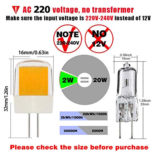 Lampadina a LED G4 2 W luce bianca calda 230 V (non bassa tensione 12 V), sostituisce 20 W, 15 W, 10 W, 3000 K, dimmerabile, 6 pezzi