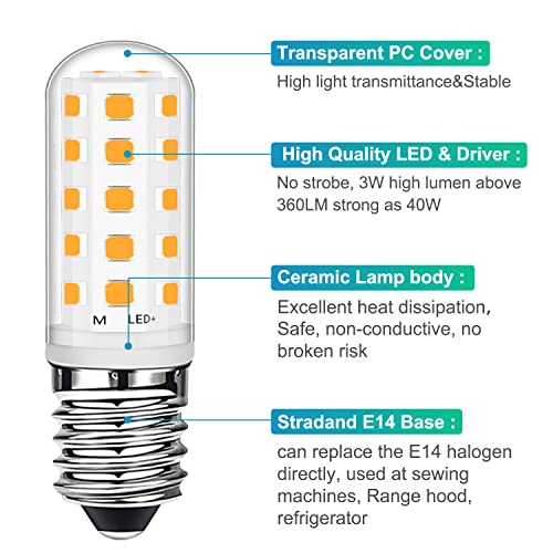Lampadina LED E14 3W Bianco Caldo 2700K 28W 33W Alogena Equivalente Risparmio Energetico, Lampadine E14 Piccole Vite Edison per Macchina Da Cucire Cappa Congelatore, AC220-240V, Confezione Da 2