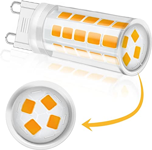✔ 【Alto CRI, 2700K bianco caldo, angolo del fascio di 360 】Questa lampadina LED della capsula G9 è CRI>85 Ra. Temperatura di colore 2700K Lampada a incandescenza bianca calda. L'illuminazione della lampada principale G9 di alta qualità può evitare l'affaticamento degli occhi, nessuna radiazione UV o IR. Fornisce luce bianca morbida e calda senza abbagliamento e nd è composto da 34leds 2835SMD chip LED ad alta efficienza energetica, 4 LED aggiuntivi sulla parte superiore della lampada