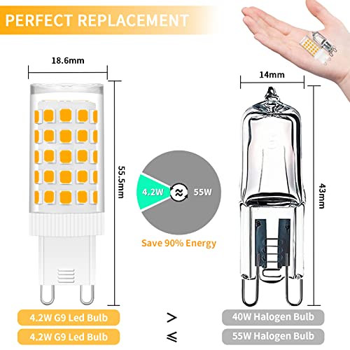 ✔【Dimensioni ridotte e facile da installare】 (Misure: 55,5 mm x 18,6 mm) rispetto alle dimensioni delle lampadine G9 sul mercato, la nostra lampadina G9 è più piccola e più bella. Ha le stesse dimensioni della vecchia lampadina alogena, ma è molto più efficiente dal punto di vista energetico. Questa lampadina LED calda G9 si adatta facilmente a tutte le prese per lampadine G9 grazie alla forma standard della base a vite G9.