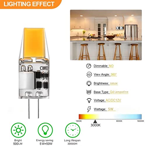 Lampadina G4 12V 5W Bianco Neutro 4000K, 500LM, 5W Equivalenti a 50W Lampada Alogena, Lampadine LED G4 per Applique da Specchio, 360 ° Di Luce, Nessun Sfarfallio, non Dimmerabile, CRI>85, 5 Pezzi