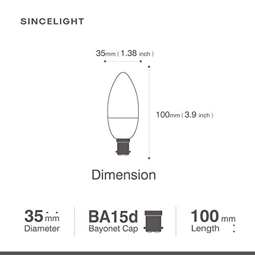 SINCELIGHT La lampadina a candela LED B15/B35 fornisce 500 lumen per sostituire le lampadine a incandescenza da 50 W. Risparmio del 90% sulle bollette energetiche.