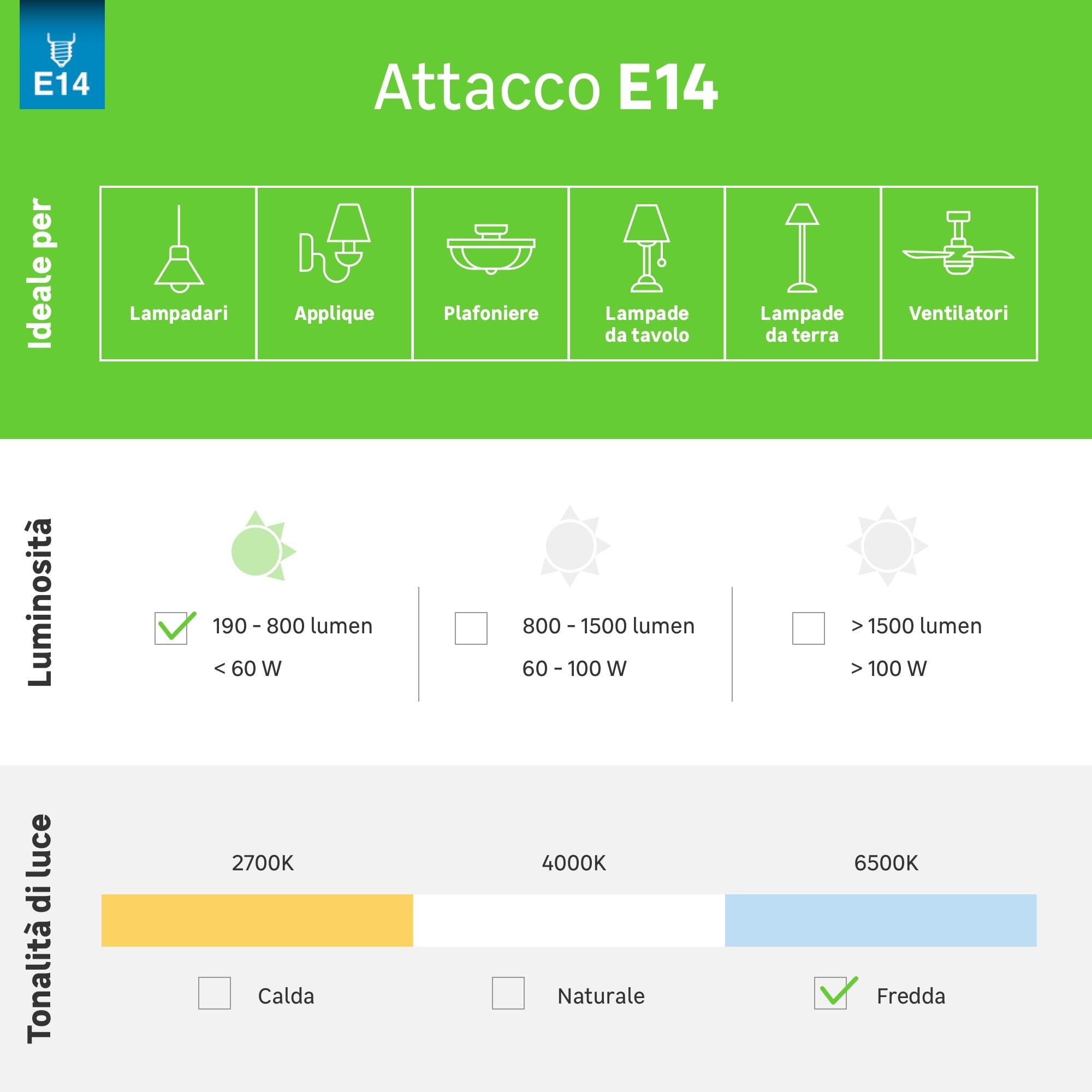 Lampadina LED, E14, Capsula, Opaco, Luce fredda;