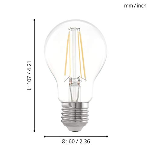 EGLO E27 LED, lampadina classica, illuminazione retro, 7 Watt (equivalente a 60 Watt), 806 lumen, luce bianco caldo, 2700k, lampadina Edison A60, Ø 6 cm