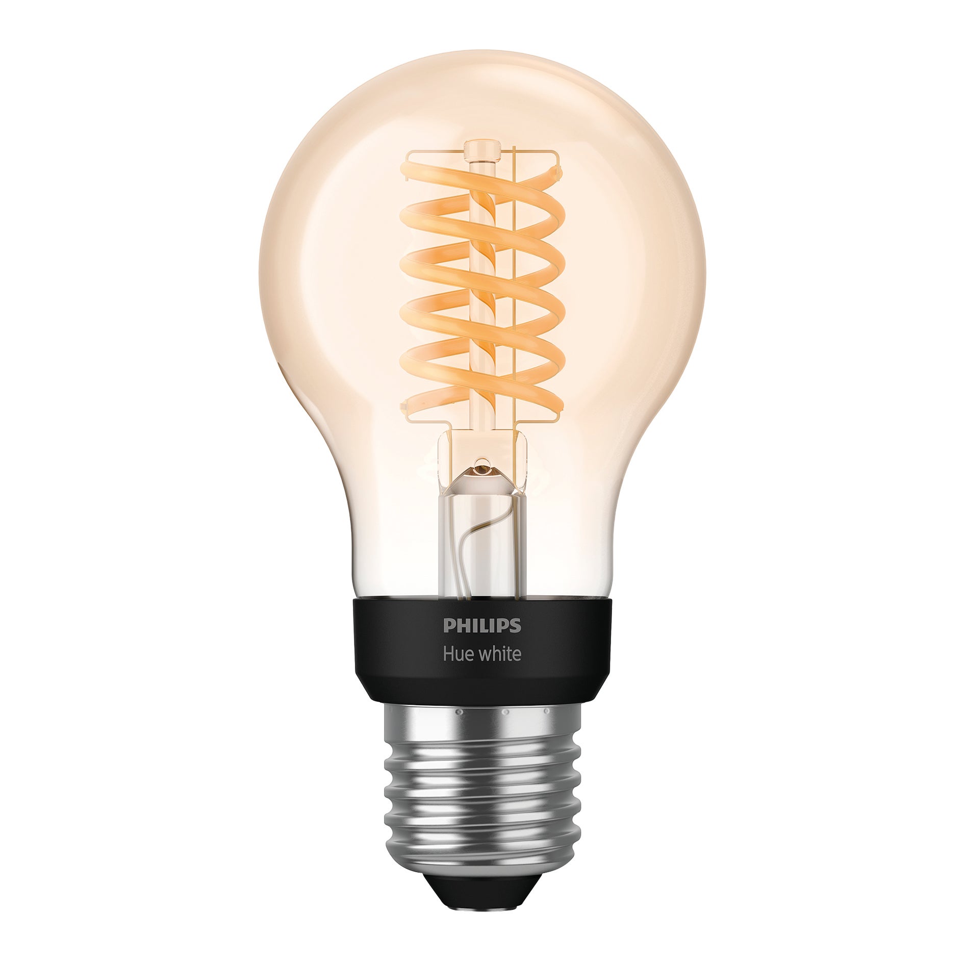 Philips Lighting Hue White Filament A60 Lampadina a Flamento Connessa, Dimmerabile, Attacco E27, 9 W, 1 Pezzo [Classe di efficienza energetica A+]. Interno/Decorativo. Per accedere alle funzionalità completa del sistema di illuminazione smart Hue invece è necessario disporre di un Bridge Hue (venduto separatamente). Il design vintage incontra la tecnologia moderna. Utilizzalo come sveglia: imposta l'ora, seleziona l'effetto di illuminazione desiderato, e risvegliati con una luce graduale che riproduce quella del sole. Crea l'atmosfera giusta con luce bianca tenue
