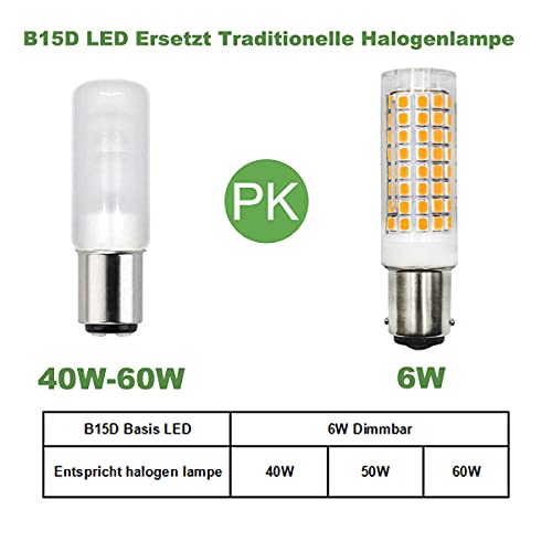 Lampadina a LED B15D 6W dimmerabile, per macchina da cucire, luce bianca calda 3000K ricambio per lampadine alogene da 60W AC 220-240V angolo di 360 gradi, per lampade da soffitto, confezione da 2