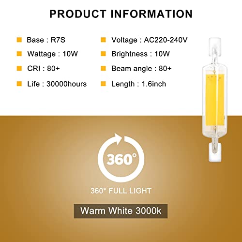 R7S LED 78mm Lampadina Dimmerabili, Lampadine LED R7S 10W 6000K Bianco Fredda 1000LM, Equivalenti a 100W Lampada Alogena, Angolo 360,Confezione da 2