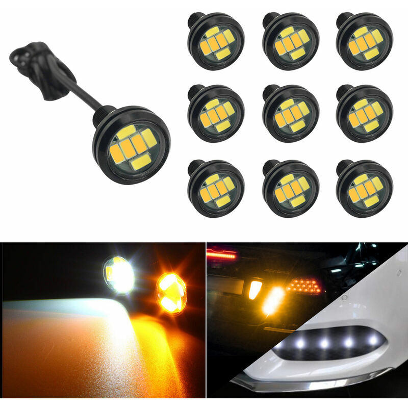 Caratteristiche: Rendi la tua notte più luminosa: Lampadine LED DRL Eagle Eye da 23 mm estremamente luminose, ambra 3000K (bianco 6000K). Le lampadine super luminose emettono una luce ambrata (bianca) ultra pura con basso consumo energetico e basso calore, fornendo una visione più chiara durante la guida. Alte prestazioni: ogni occhio d'aquila è dotato di chipset super luminosi ad alte prestazioni, basso consumo energetico, bassa temperatura e alta luminosità. Porta la sicurezza nelle strade. Solidamente costruito: telaio in lega di alluminio + lente del condensatore, 100% impermeabile e antipolvere, resistente a tutti i tipi di tempo, durata della vita di oltre 50.000 ore. Installazione semplice: progettato semplicemente per un facile montaggio, può essere installato su qualsiasi superficie del veicolo praticando fori, collegando fili positivi e negativi e il gioco è fatto. Ampia applicazione: questa luce a LED per occhi d'aquila ha molti usi. Puoi usarlo come fendinebbia o sotto la