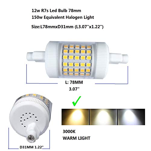 Confezione Da 2 Pezzi, Lampadina A LED R7s 78mm 150w Equivalente A 3.07 "Lampadina Dimmerabile J78mm, Dimensioni 78mmxD31mm (L 3.07" X D1.2 "), 3000K Luce Bianca Morbida 120V Lampadina A LED Tipo J;