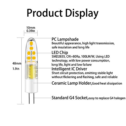 Dimensioni - Diametro 10mm x Lunghezza 48mm, nota lampadine a LED G4 più grande rispetto alle tradizionali lampadine alogene G4. Si prega di verificare se si adattano al vostro apparecchio.