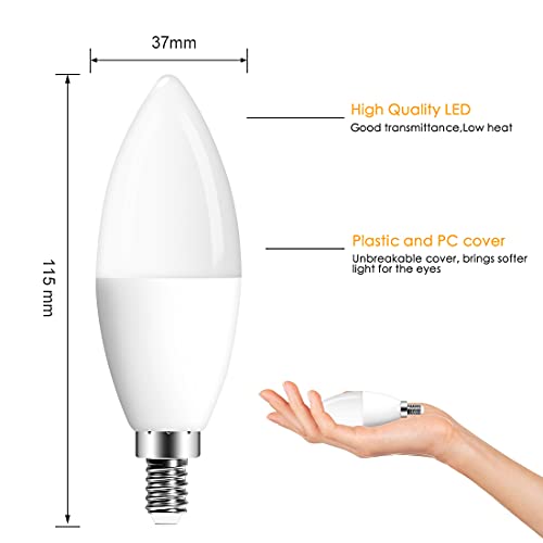 Lampadina LED E14 RGB, 5W (equivalenti a 50W) Lampadina a Candela, Luce Fredda 6000K, Dimerabile Cambiare con Telecomando, Colorate RGB, Colore Lampadina Multicolore, (Pacco da 4)