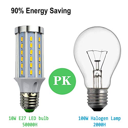 Lampadina E27 a risparmio energetico: Lampadine E27 a LED hanno una classe di efficienza energetica di A +. Rispetto alle lampadine alogene convenzionali, queste lampadine LED E27 consumano solo 10W, sono la sostituzione perfetta per lampadina alogene da 80W 100W, risparmiando il 90% sul consumo di elettricità
