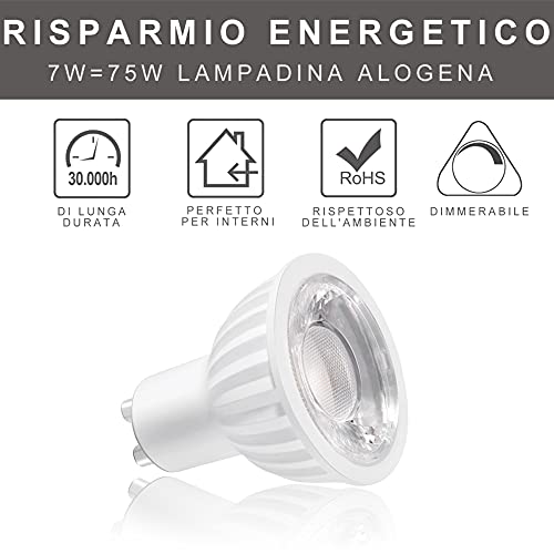 FTL lampadina GU10 LED Faretti Luce Bianca Fredda 5000K 5W(60W Equivalenti a incandescenza),Dimmerabile lampadina per faretto, AC 220-240 V,angolo di visione 40°450LM,6 pezzi