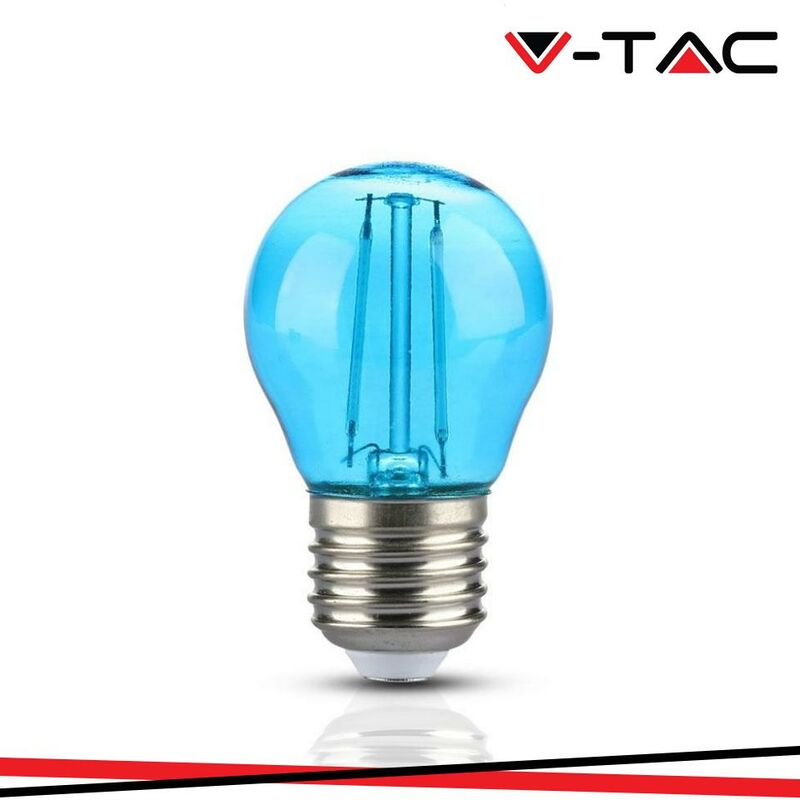 LED Lampadina 2W Filamento E27 G45 Blue SKU: 217412: VT: VT-2132 Caratteristiche del prodotto 80% di consumo energetico in meno rispetto alle lampadine standard Lunga durata Nessuna emissione di radiazioni UV e radiazioni non ionizzanti Accensione immediata, nessun tempo di riscaldamento Bassa potenza termica Direttamente sostituibile alle lampade ad incandescenza tradizionali Installazione Aree Commerciali e Residenziali Hotel, Bar Stand espositivi Lampadari Allaperto, esclusivamente allinterno di apparecchi idonei. Specifiche tecniche Informazione generale Attacco E27 Tipo Lampadina G45 Tipo LED Filamento Vitamedia 20,000 ore Dati elettrici Potenza 2W Tensione AC:220-240V Frequenza 50Hz Dati tecnici luce Fascio Luminoso° 300° Colore della luce Blu Flusso luminoso (lm) 60 lm Dettagli corpo Materiale Vetro Funzionalità IP Protezione IP20 Tempo innesco 100% 0.001 secondo Stabilità del colore Numero cicli accensione / spegnimento >15000 Condizioni di lavoro -20°C to +45°C Fattore