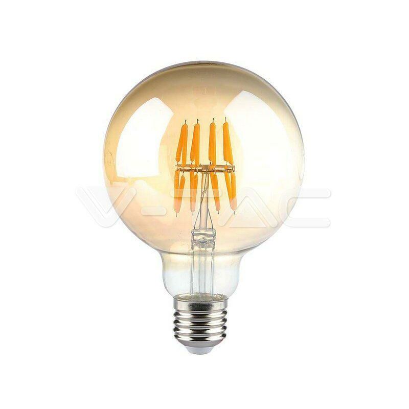 LED Lampadina 8W Filamento E27 G95 Amber 2200K SKU: 217145: VT: VT-2019 Caratteristiche del prodotto 80% di consumo energetico in meno rispetto alle lampadine standard Lunga durata Nessuna emissione di radiazioni UV e radiazioni non ionizzanti Accensione immediata, nessun tempo di riscaldamento Bassa potenza termica Direttamente sostituibile alle lampade ad incandescenza tradizionali Installazione Aree Commerciali e Residenziali Hotel, Bar Stand espositivi Lampadari Allaperto, esclusivamente allinterno di apparecchi idonei. Specifiche tecniche Informazione generale Attacco E27 Tipo Lampadina G95 Tipo LED Filamento Vitamedia 20,000 ore Dati elettrici Potenza 8W Potenza EQV. a incandescenza 50W Tensione AC:220-240V Frequenza 50Hz Dati tecnici luce Fascio Luminoso° 300° Colore della luce Bianco caldo Temperatura di colore 2200K Flusso luminoso (lm) 700 lm Indice di resa cromatica Ra >80 Dettagli corpo Materiale Vetro Funzionalità IP Protezione IP20 Tempo innesco 100% 0.001 secondo