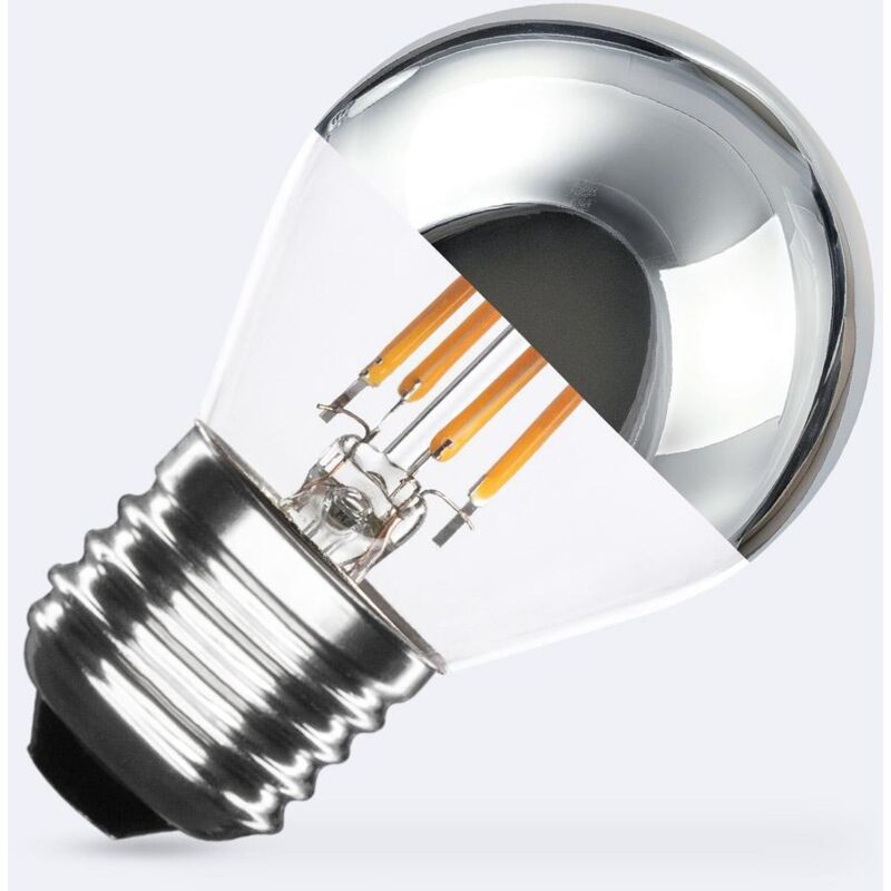 La Lampadina LED Filamento E27 4W 400 lm G45 Chrome Reflect offre un'alternativa moderna ed efficiente alle tradizionali lampadine da 60W, mantenendo il fascino retrò che tanto piace. Con una distribuzione della luce di 300°, questa lampadina garantisce un'illuminazione uniforme in qualsiasi spazio, grazie all'alta qualità e al design del vetro del filamento. Con i suoi 4W di potenza, questa lampadina fornisce un flusso luminoso di 400 lm, assicurando un'illuminazione un'illuminazione soffusa e gradevole in ogni momento. Con la Lampadina LED Filamento E27 4W 400 lm G45 Chrome Reflect, potrai creare spazi accoglienti e personalizzati, senza compromettere l'efficienza energetica o lo stile retrò che stai cercando. SCHEDA TECNICA: Dimensioni: 72 mm x Ø45 mm Durata: 30.000 Ore Protezione IP: IP20 Uso: Interno Tensione di Alimentazione: Certificati: RoHS, CE, UKCA