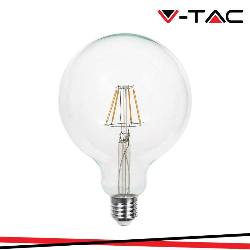 LED Lampadina 10W Filamento E27 G125 Clear Cover 4000K SKU: 214423: VT: VT-1979-N Caratteristiche del prodotto 80% di consumo energetico in meno rispetto alle lampadine standard Lunga durata Nessuna emissione di radiazioni UV e radiazioni non ionizzanti Accensione immediata, nessun tempo di riscaldamento Bassa potenza termica Direttamente sostituibile alle lampade ad incandescenza tradizionali Installazione Aree Commerciali e Residenziali Hotel, Bar Stand espositivi Lampadari Allaperto, esclusivamente allinterno di apparecchi idonei. Specifiche tecniche Informazione generale Attacco E27 Tipo Lampadina G125 Tipo LED Filamento Vitamedia 20,000 ore Dati elettrici Potenza 10W Potenza EQV. a incandescenza 75W Tensione AC:220-240V Frequenza 50Hz Fattore di potenza >0.5 Dati tecnici luce Fascio Luminoso° 300° Efficienza luminosa (lm/W) 105 lm/W Colore della luce Bianco naturale Temperatura di colore 4000K Flusso luminoso (lm) 1055 lm Indice di resa cromatica Ra >80 Dettagli corpo Materiale